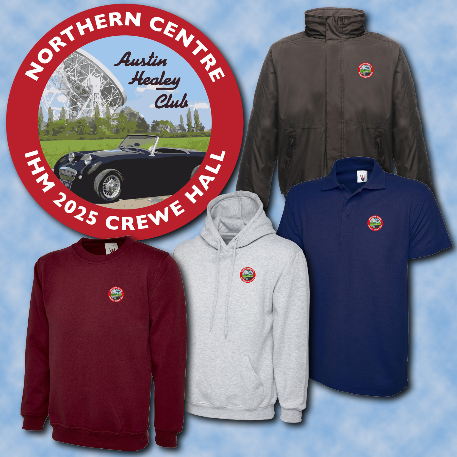 Why not treat yourself to a little something for the event. We are pleased to announce the availability of a number of regalia items, including polo shirts, sweatshirts, hoodies and jackets, all featuring the event logo (click to enlarge).